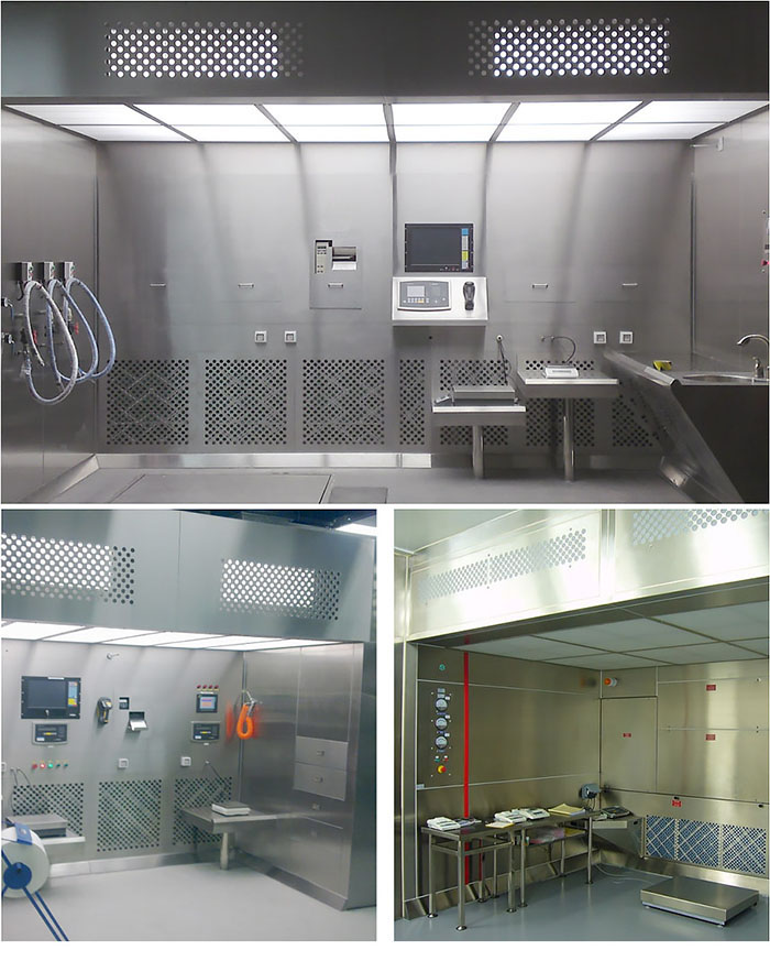 負壓稱量房它提供一種垂直單向氣流,并保持設備內的壓力相對與設備外部為負壓。負壓稱量房在設備中進行粉塵、試劑稱量或分裝,可以有效控制粉塵、試劑外溢、上揚,防止粉塵、試劑對人體的吸入危害,還可避免粉塵、試劑的交叉污染,保護外界環境及室內人員的安全。