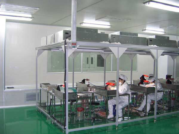 潔凈棚采用工業鋁材(或不銹鋼方通、鐵方通噴塑)作為框架,風機濾網機組(FFU)送風,四周懸掛防靜電垂簾(或鋼化玻璃),其內部凈化級別可達到100-10000級。適用于操作區內局部凈化級別要求高的區域。